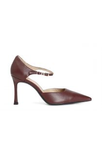 Geteiltes seitlich offenes dekolleté an der schmalen lederform mit personalisierter schnalle. feiner absatz 87 mm hoch. futter und innensohle sind aus leder. schuh mit elegantem und femininem stil.