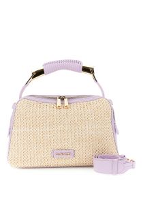 raffiatasche mit überschlag und kontrastierendem besatz in lederoptik. cream/lilac
