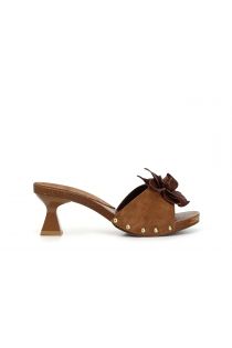 rauleder-sandalen mit verziertem riemen und 3d-blume. tobacco