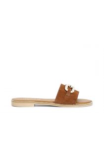 raulederpantoletten mit schmuck-accessoire tan