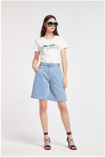 Jeans-shorts in regular-passform aus komfort-gewebe. personalisierte plaketten am gürtel