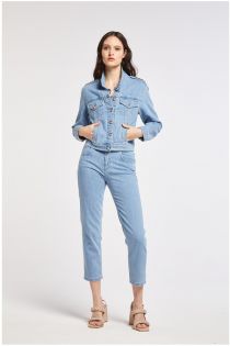 Regular-jeans aus komfort-stoff. personalisierte plaketten an der hintertasche