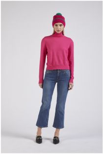 rollkragenpullover mit schulterrüschen bubble gum