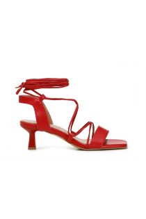 Sandalen mit eckiger Spitze und 50er Absatz, Römer-Schnürung, Futter und Innensohle aus Leder.