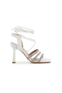 Römersandalen mit eckiger Spitze, 115 mm Absatz, Mikrostrass auf den vorderen Riemchen, Futter und Innensohle aus Leder.