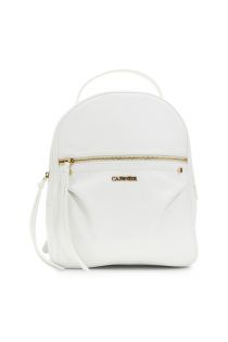 rucksack aus weichem, genarbtem lederimitat mit metallnieten white