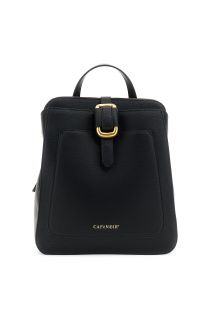 Ungefütterter Rucksack aus Saffiano-Leder mit flacher Vordertasche. Das geprägte Café Noir-Logo und goldfarbene Beschläge verleihen ihm einen Hauch urbaner Eleganz.