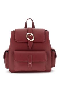 Rucksack aus genarbtem Kunstleder mit mehreren Fächern und einer Klappe mit asymmetrischer Schnalle. Praktisch, geräumig und perfekt für einen markanten Look.