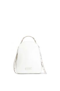 Eleganter rucksack mit seitentaschen zweifarbigen mit nieten verzierten reißverschlussschiebern reißverschlussöffnung hinten geflochtenem griff und verstellbaren schultergurten. stil und funktionalität.