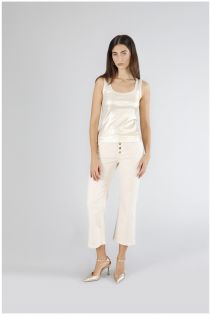 rundhals-tanktop aus plattiertem rippstrick light gold