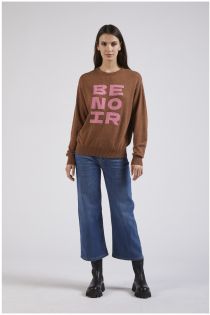 Pullover mit rundhalsausschnitt aus einem warmen und weichen angora-mischgarn. auf dem pullover ist unser slogan „be noir“ in einer kontrastfarbe abgebildet. eine zarte linie aus strasssteinen umrahmt die inschrift.