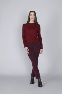 rundhalspullover mit knöpfen an den ärmeln burgundy