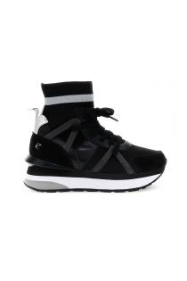 Schwarze Laufstiefeletten aus Stretchmaterial oder mit Animal-Print. Textilfutter, Lederinnensohle und 4 cm hohe Sohle. Komfort und Style für einen Sneaker mit Statement-Charakter.