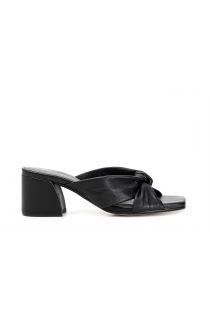 Sabots mit Knoten aus Leder auf mittlerem Absatz, eckige Spitze.