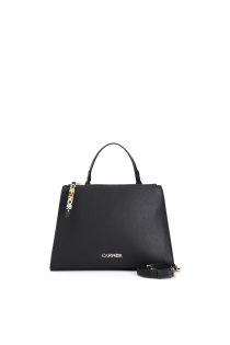saffiano-einkaufstasche mit reißverschluss und personalisierten buchstaben black