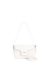 Umhängetasche aus saffiano-leder mit überschlag verziert mit emailliertem accessoire und metallfäden. ausgestattet mit einem verstellbaren und abnehmbaren schultergurt für maximale vielseitigkeit.