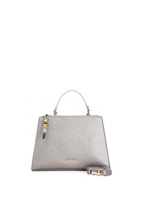 saffiano-tote mit reißverschlusszug mit personalisierten buchstaben pewter