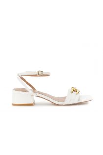 Elegante sandalen in lederoptik mit verstellbarem knöchelriemen. die offene zehenpartie ist mit einem dekorativen metallapplikation verziert und die bequeme lederinnensohle sorgt für hohen tragekomfort. der 4 cm hohe blockabsatz rundet das design ab. ideal für stilvolle sommer-looks – diese sandalen vereinen stil und alltagstauglichkeit.