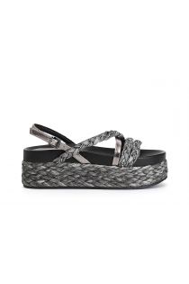 sandalen aus geflochtenem raffiabast und strasssteinen anthracite