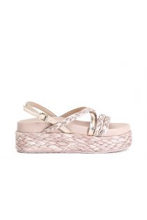 sandalen aus geflochtenem raffiabast und strasssteinen powder