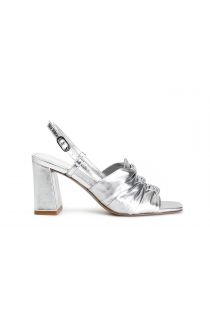 Sandalen aus laminiertem leder mit quadratischer zehenpartie. riemen mit verstellbarer schnalle. obermaterial futter und innensohle sind aus leder. 8.5 cm hoher breiter absatz. eleganter stilvoller und formeller schuh.