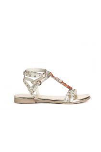 sandalen aus laminiertem leder mit blatt-accessoire gold