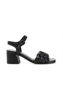 Sandalen, Modell Gilda, eckige Spitze und geflochtener Lederriemen. Mittlerer Absatz.