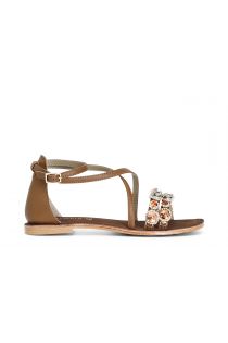 Überkreuzte schmuck-sandalen aus leder hinten geschlossen mit doppeltem riemen.