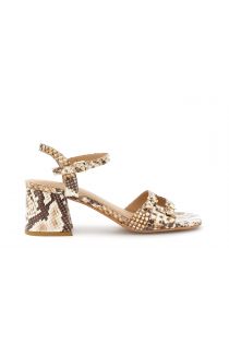 sandalen aus leder mit pythonmuster, mit doppelschnalle und riemen multi beige