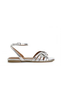 sandalen aus metallisiertem leder mit knöchelriemen silver