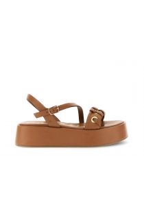 sandalen aus nappaleder mit ösen und ziernähten tan