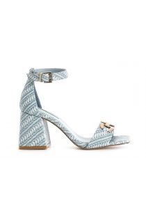 sandalen bastoptik mit blockabsatz und accessoire blue