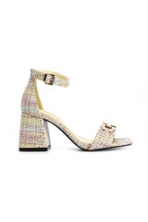 Sandalen bastoptik mit blockabsatz und gold-accessoires. innensohle leder. 70 mm hoher absatz.