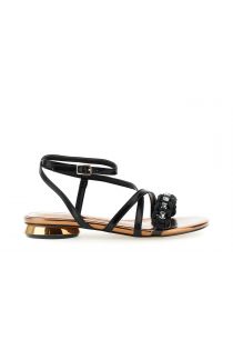 sandalen in laminierter lederoptik mit knöchelriemen und strasssteinen black