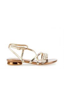 sandalen in laminierter lederoptik mit knöchelriemen und strasssteinen gold