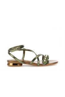 sandalen in laminierter lederoptik mit knöchelriemen und strasssteinen green