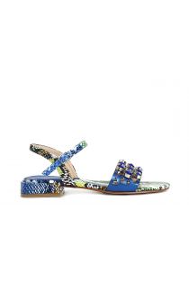 Gestanzte sandalen mit farbigem strass in eidechsenoptik. bequeme gepolsterte innensohle für eine weiche passform. 20 mm hoher absatz. bequem zu tragen und leicht zu kombinieren.