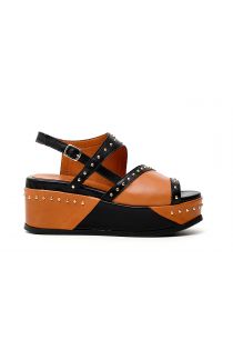Sandalen mit Absatz und Plateausohle aus geflochtenem Bast und Bändern aus Kunsteder mit Schlangendruck