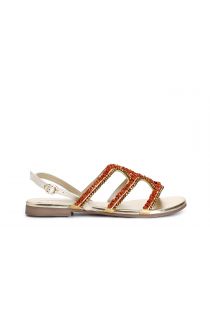 Sandalen mit applikationen und strasssteinen. futter und innensohle sind aus leder. der absatz ist 2 cm hoch. angenehm zu tragen und einfach zu kombinieren.
