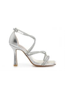 Die sandalen sind hinten geschlossen doppelt überkreuzt und mit strasssteinen besetzt. absatzhöhe 105 mm