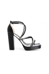 Sandalen mit strasssteinchen hinten geschlossen knöchelriemen und plateau. absatzhöhe 115 mm