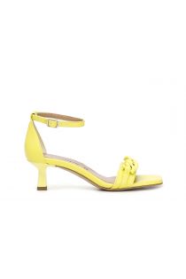 Sandalen mit eckiger Spitze und 50 mm Absatz, Ketten-Accessoire, Futter und Innensohle aus Leder.