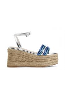 Sandalen mit gepolsterten mignon. 55 mm hoher plateauschuh mit 80 mm hanfkeilsohle.