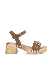 Zunftmodell-sandalen mit verziertem horsebit. 6 cm hoher klobiger absatz.