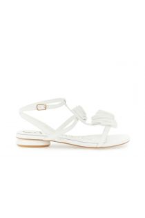sandalen mit knöchelriemen in lederoptik und blumenapplikationen off white