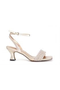 sandalen mit knöchelriemen und strass light gold