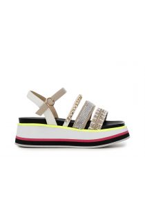Sandalen mit mehreren Riemchen, mit Kette und Mikrostrass, Sohle aus mehreren dünnen farbigen Schichten und bequemes Fußbett.