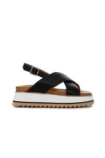 Sandalen mit niedrigem Keil und gekreuzten Bändern