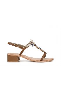 Sandalen mit niedrigem T-Absatz und mehrfarbigem Schmuckschmetterling