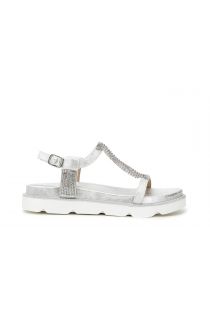 Bequeme Plateausohle mit dreidimensionalem Wellenmuster, mit Leder umhüllt und mit gepolsterter Innensohle. Geflochtene Bänder und Knöchelriemen.